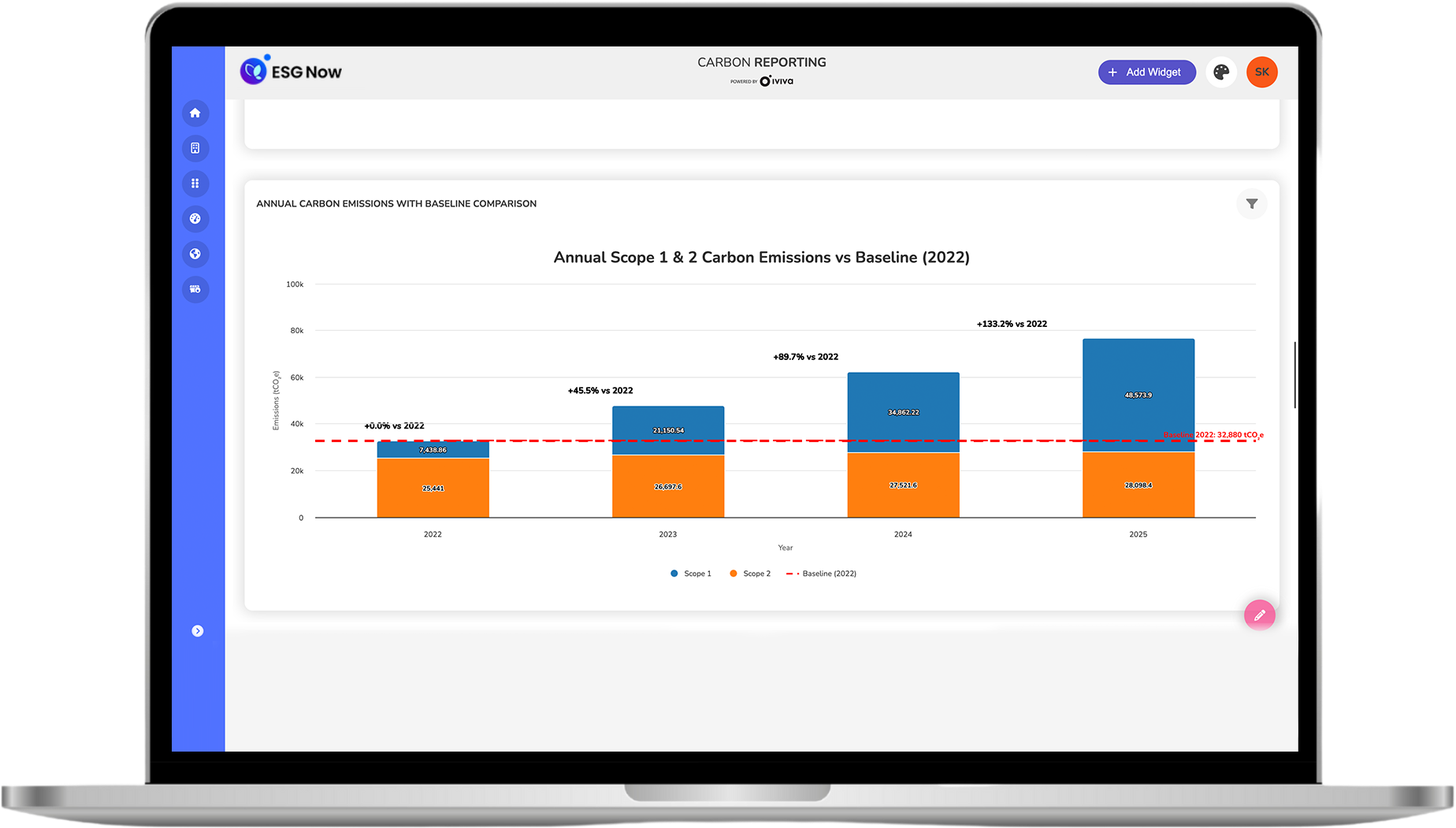 Generate reports aligned with GRI, ISO 14064 and other frameworks –